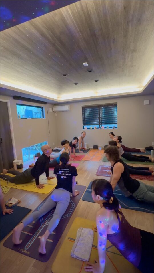 私もこのワークショップに照準合わせて、長めの休暇をとってダラスから日本に一時帰国していました。いつもはオンラインのクラスを担当してますが、今回はスタジオで皆さんと一緒に楽しく汗を流しました。そして今回の滞在中には、去年から温めていた「ヨガ・リトリート」(合宿)のコンセプトをテスト実行することが出来ました。場所は志賀高原、熊の湯温泉。一緒にスキーに来ていた友人家族(ヨガ経験者)に我々のヨガレッスンに参加して頂いて、まさにヨガ・スキー・温泉三昧の旅行を体験してもらいました。朝晩2回ヨガをして、ゆっくりお風呂に入っているお陰で、皆身体の調子がすこぶる良く、これならやれると確信したので、今年から「ヨガ・リトリート」を計画していきたいと思います。乞うご期待!